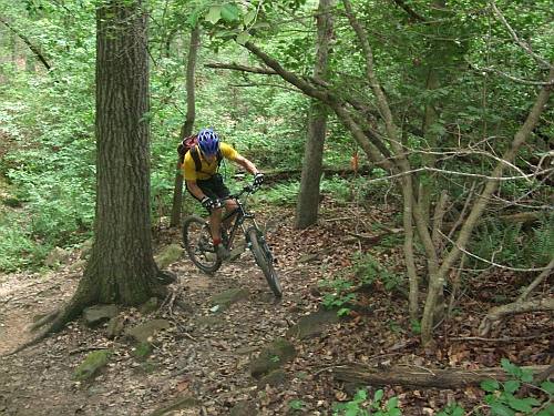 This is a pretty fast course with varied trail type. The first mile is pretty fast and not very technical. The entire course is heavily wooded and gets kind of nasty when it rains. The next two miles is fairly technical and not nearly as fast as the trail winds through the woods and across several streams and washed out gullies. The last 1.5 miles is fast and straight and takes you around the entire course once again. For the most part this is down hill and very fast. Towards the very end of the loop, the trail makes its way back up to the parking area. This loop is known as the race loop; Champion loop is another loop that goes around the course staying on the non-technical outer rim used by the race course. A pretty good ride. Similar to San Lee but a little faster.